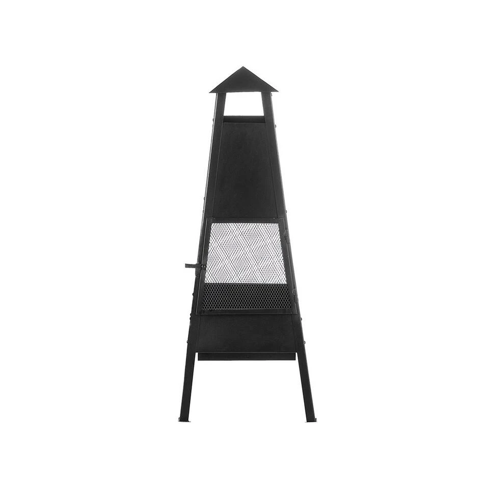 Zwarte firepit in piramidevorm van staal. Met deze outdoor-kachel ben je altijd klaar voor gezellige avonden in de tuin of op het terras. De rookafvoeropening zorgt voor een optimale trek en dankzij de afsluitbare voordeur kan deze eenvoudig en gemakkelijk worden gevuld met hout of kolen. De aslade maakt een eenvoudige reiniging mogelijk.