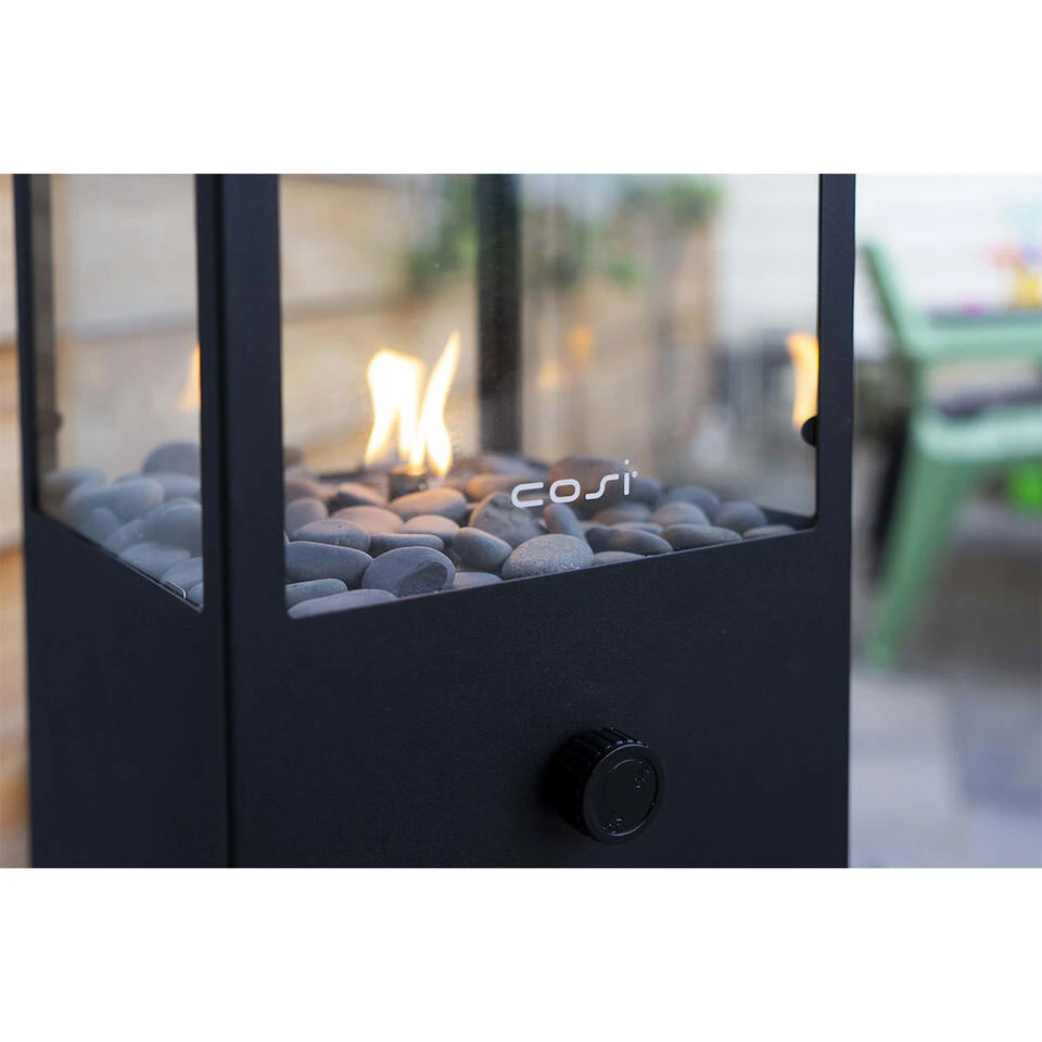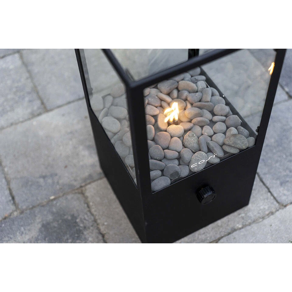De Cosiscoop Dome zwart van kwaliteitsmerk Cosi Fires is een sfeervolle gaslantaarn om je tuin net even wat meer sfeer te geven. De lantaarn heeft een mooi strak design en is gemaakt van metaal. Het metaal is mooi afgewerkt met een glazen behuizing. De combinatie zwart metaal met de glazen kap maakt de gaslantaarn een strakke eye-catcher voor buiten. De Cosiscoop is ideaal voor gebruik buitenshuis, vooral wanneer het sneller donker wordt. De Cosiscoop Dome is zeer eenvoudig in gebruik. De lantaarn werkt op een 190 gram gascartouche. Draai het gasblikje aan de onderkant van de lantaarn in de daarvoor bestemde pin, je hoort het gas zachtjes sissen. Om de lantaarn aan te zetten draai je de knop open en steek je de lantaarn met een lange aansteker aan. De gaslantaarn heeft een afmeting van: B 18 x L 18 x H 45 cm. De lantaarn wordt exclusief gasfles geleverd, maar inclusief donkere kiezelstenen.