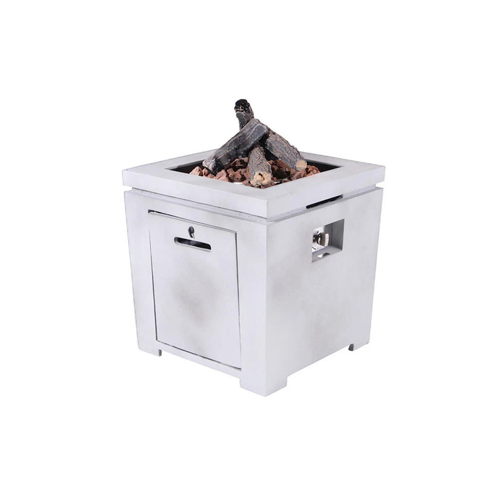 Zie jij jezelf ook al heerlijk genieten in je tuin met een sfeervolle gas vuurtafel? Met deze Cozy living Lisboa sfeerhaard zit je er gegarandeerd lekker warm bij. Met het grote voordeel dat je geen last hebt van rook of vonken. Deze Lisboa Cozy Living sfeerhaard 60×60 cm is vervaardigd uit een onderhoudsvrije RVS brander en RVS topblad afgewerkt met weerbestendige composiet in betonlook. Composiet kan tegen extreem hoge temperaturen. De RVS-brander wordt mooi weggewerkt door de meegeleverde lavastenen en vier houtblokken. Heb je kinderen en vind je de vlammen toch wat gevaarlijk? Dit is makkelijk op te lossen met een glazen vierkante ombouw. Let op: deze glazen ombouw wordt niet standaard meegeleverd en is los te bestellen. De Lisboa sfeerhaard heeft het voordeel dat de gasfles erin kan worden opgeborgen. Geen last van een gasslang of gasfles op je terras. Daarnaast is de gas vuurtafel gemakkelijk te ontsteken door middel van een elektrische ontsteking. De hoogte van de vlam is zelf in te stellen met een handige draaiknop. De ontsteking en draaiknop bevinden zich aan de zijkant van de lounge vuurtafel.