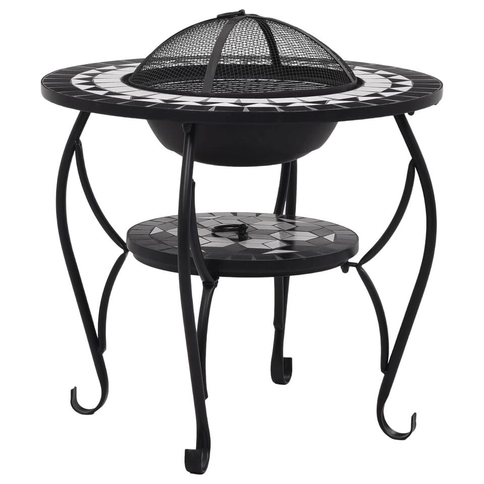 De vuurschaal is gemaakt van hoogwaardig staal en is uitstekend in het absorberen en uitstralen van warmte. Hij kan worden gebruikt met droog hout, houtblokken of houtskool. De vuurplaats wordt ondersteund door een driepotige standaard. Dankzij het inbegrepen veiligheidsgaas kijk je veilig naar het brandende vuur terwijl wordt voorkomen dat vonken en puin uit de schaal schieten. De poker kan worden gebruikt om het gaasdeksel te verwijderen en om de houtblokken of kolen te herschikken. Bovendien kan de vuurschaal ook als barbecue worden gebruikt. Het ronde, keramische oppervlak is een perfecte plek voor drankjes en braadbenodigdheden. Let op, dit product is niet geschikt om in koud weer buiten te staan.